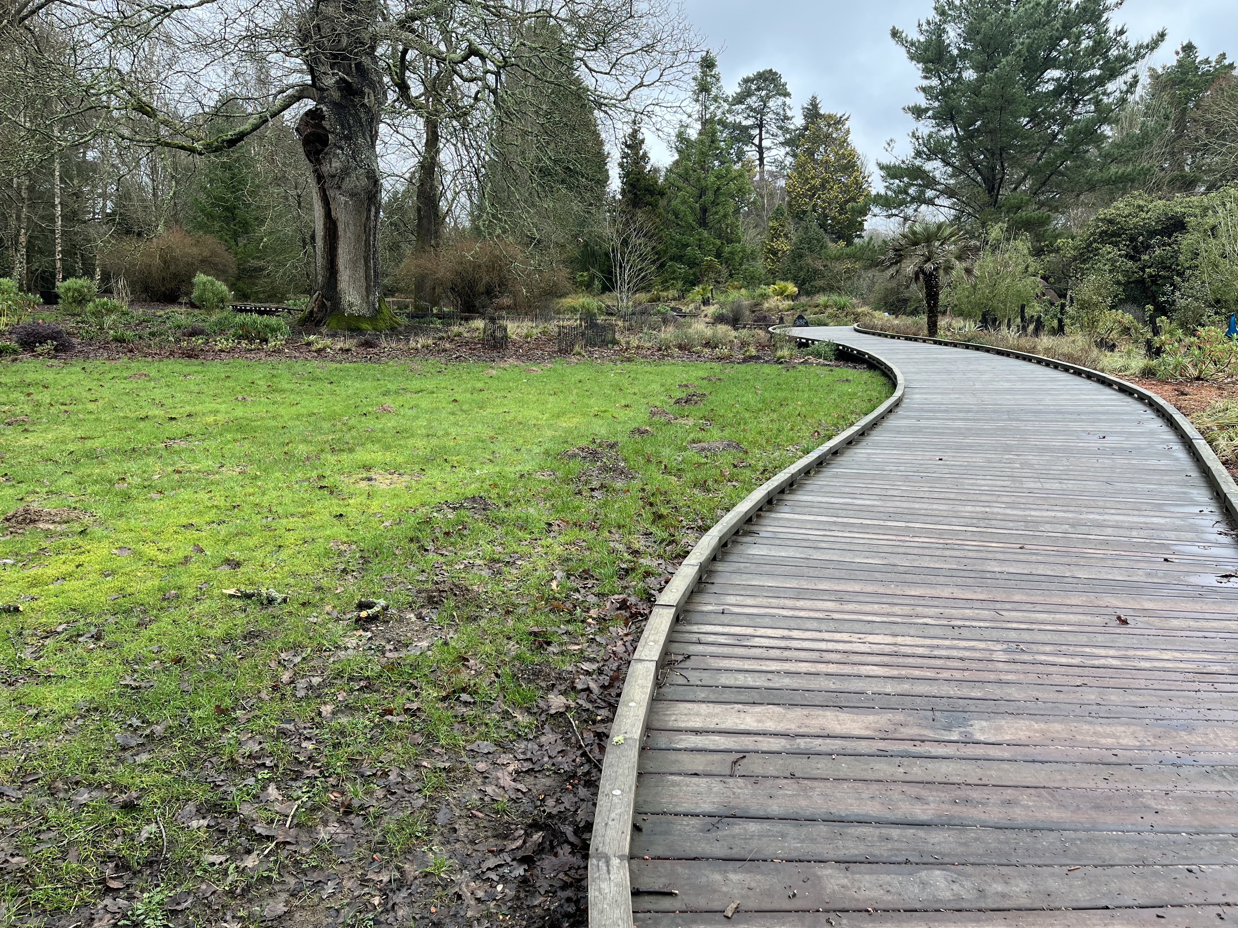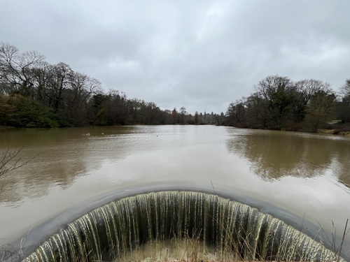 We arrived at Sheffield Park about 40 minutes before dogs are allowed in on a Saturday. We initially tried the Estate walk but quickly realised how wet it was, so we walked down the lane instead. We eventually found some woodland at the back of one of the ponds which gave us a great view into the gardens.