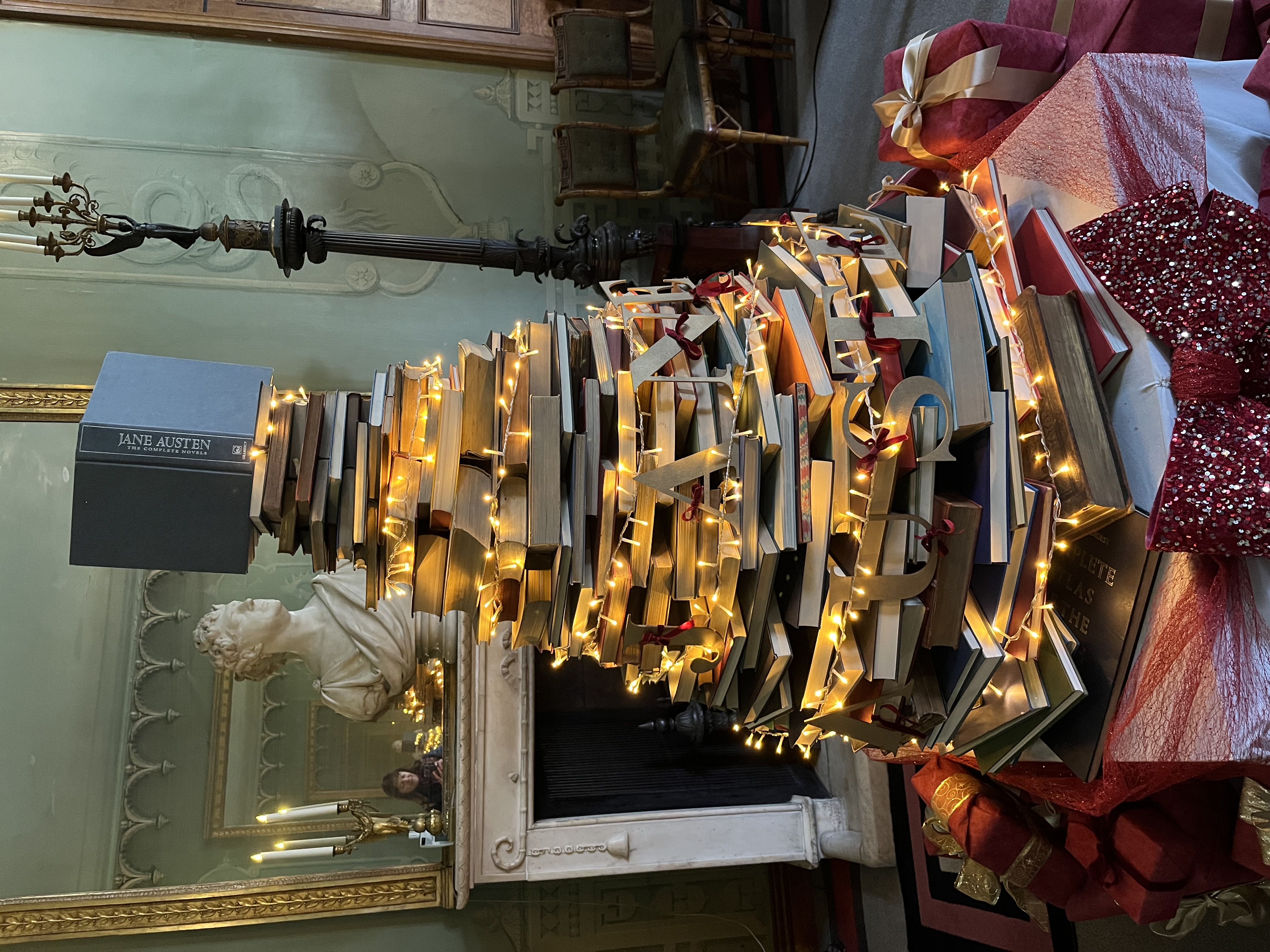 My friend and I went for our annual look at the trees at Brighton Pavilion today. This year’s theme was Jane Austen, which certainly changed the decorations around a bit. I thought it was a brilliant change, actually! The rooms felt gorgeous, and they used the theme so cleverly—look at the tree made of stacked books and the floating pages in the hall.