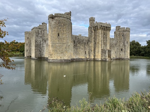 I don’t remember Bodiam Castle being on the Pooch Passport list last year, but it’s there now. I started by pulling out a few of our East Sussex walking guidebooks, where I found four routes, ranging from a mile and a half to seven miles. In the end, Richard plotted a combination of a couple of the shorter ones, coming in around five kilometres. It was absolutely lovely. It had everything: views of the landscape, a walk past alpacas, through an orchard, into the woodland, and right beneath a massive horse chestnut tree. What a great route! We finished it off with a walk around the castle grounds.