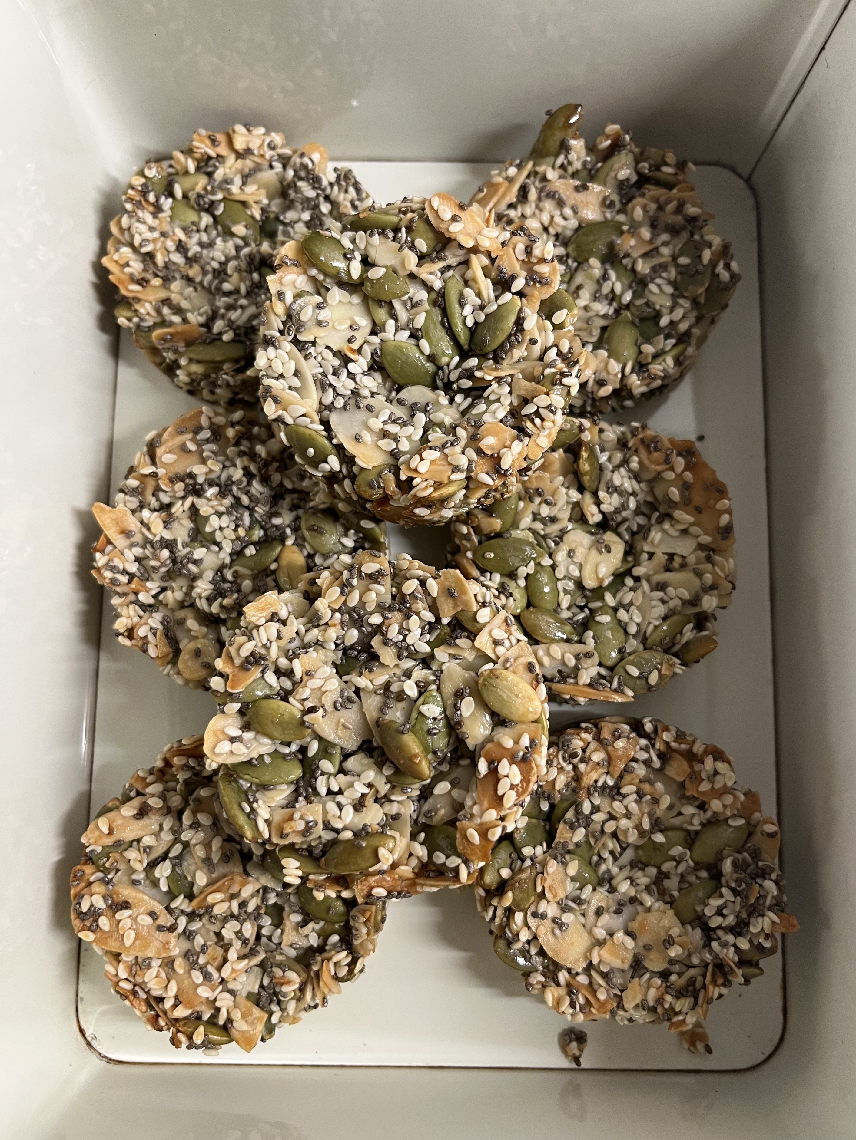 I tried a new recipe this week for these crunchy nut and seed rounds from Nadia’s Healthy Kitchen.