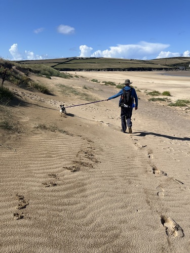 In the afternoon, we walked from busy Padstow, following a coast with sand dunes. What a contrast to our morning walk! It was still pleasant, but we found Padstow to be a bit overwhelming, especially when we first arrived.
