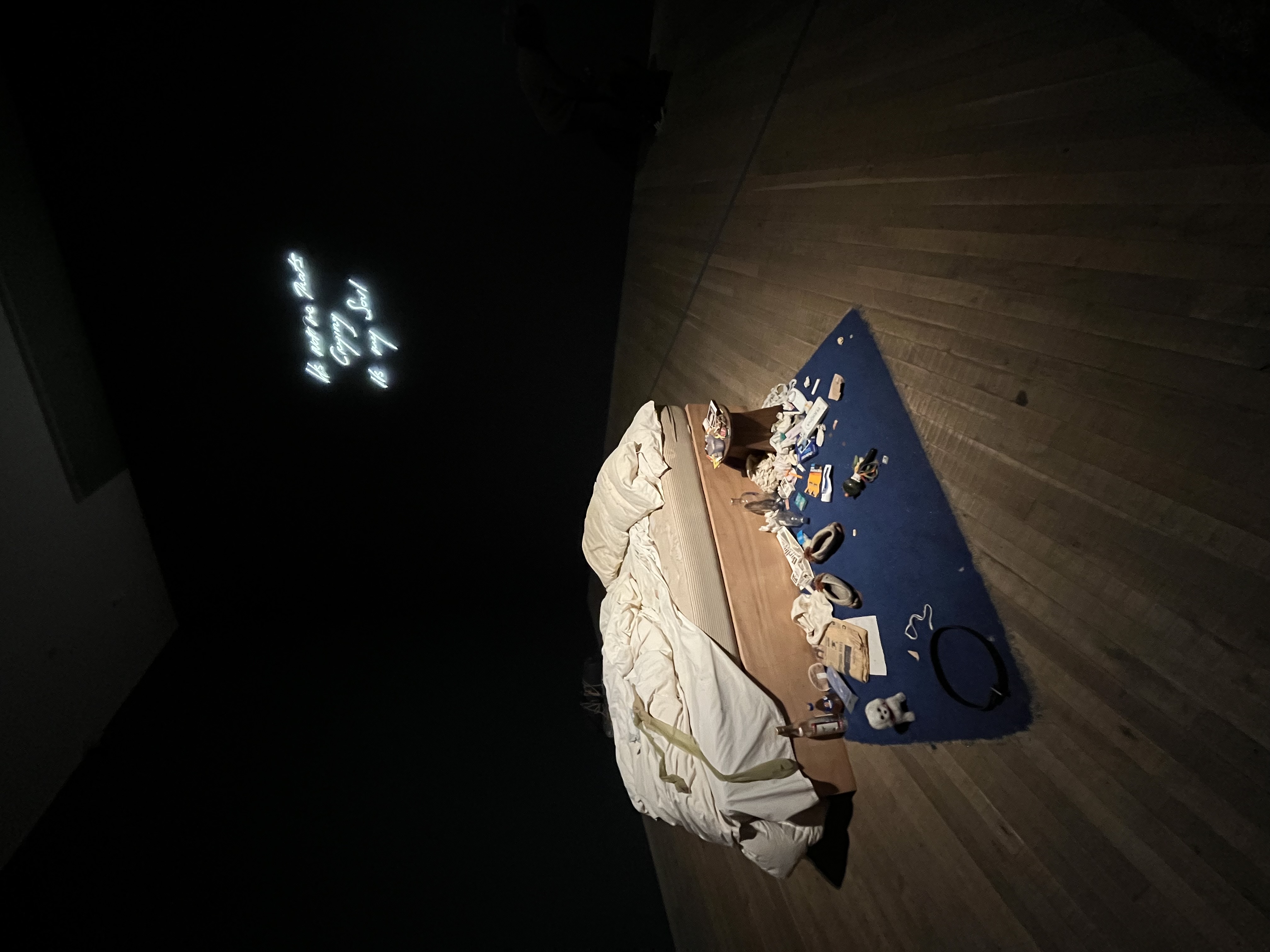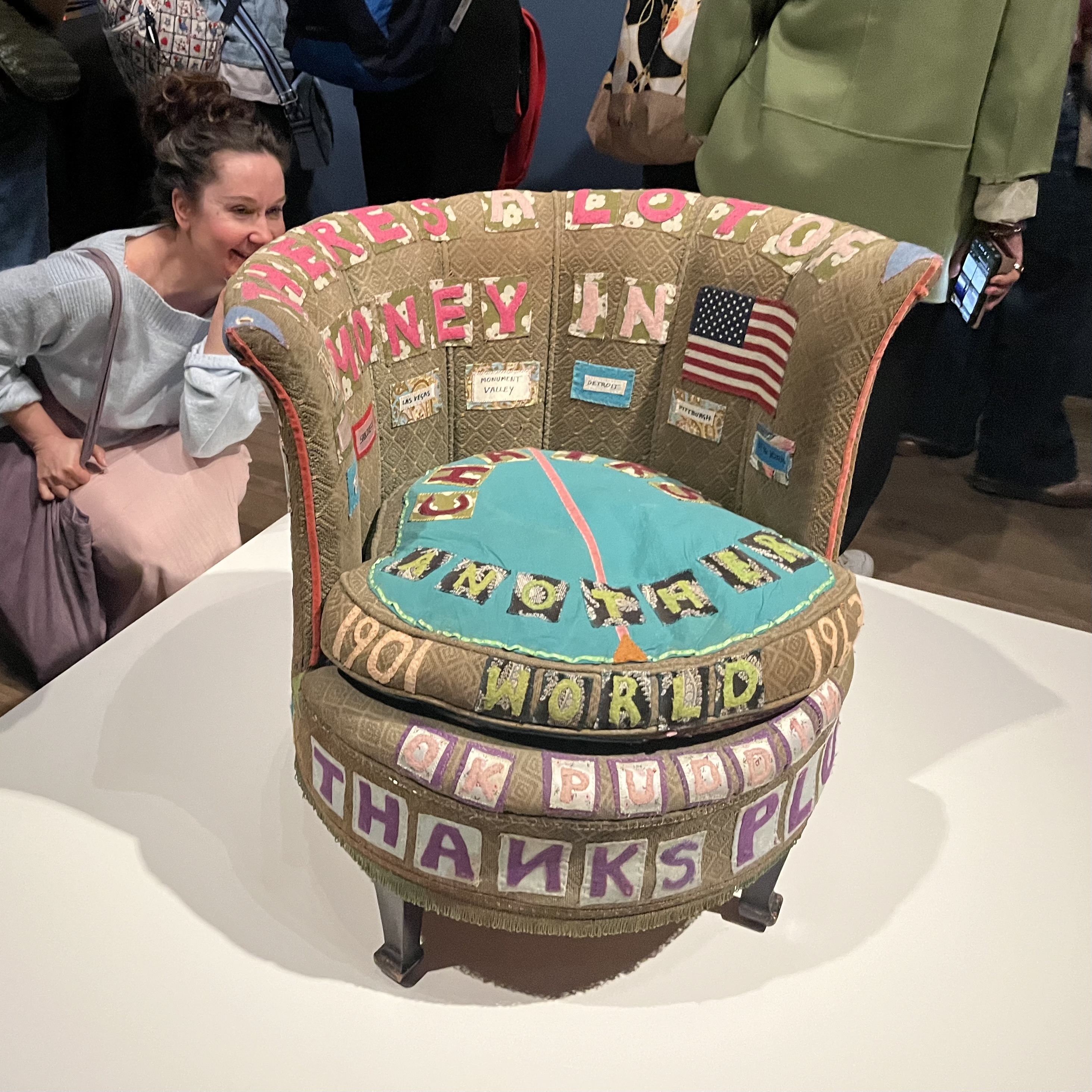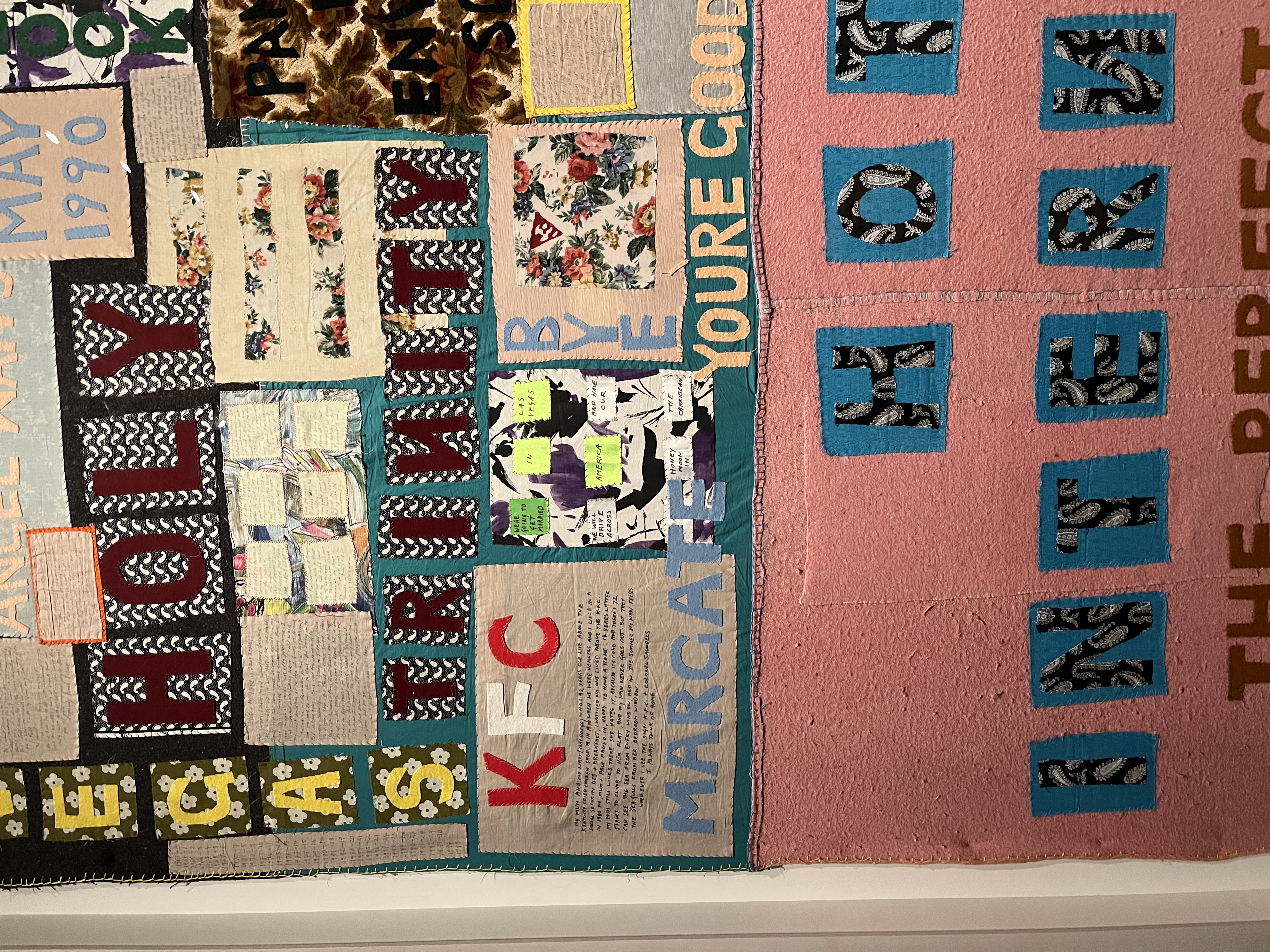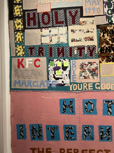 That created its own set of hurdles. Reading Tracey’s handwriting on the blankets, the chair, and the various documents was difficult with the crowds. There were also “no-go” zones around some pieces. I lost count of the number of times a warning beep went off because someone leaned in too far, followed by a steward’s cry of “Keep away from the artwork!”
