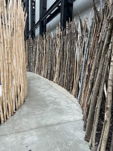There weren’t many information panels near the works. Instead, there was an audio guide. We discovered that if we played the audio, turned the volume down, and turned on the subtitles, we could read the commentary instead of wearing headphones. However, that meant we spent a lot of time staring at our phones rather than the art. It felt like an odd way to get the context we needed.